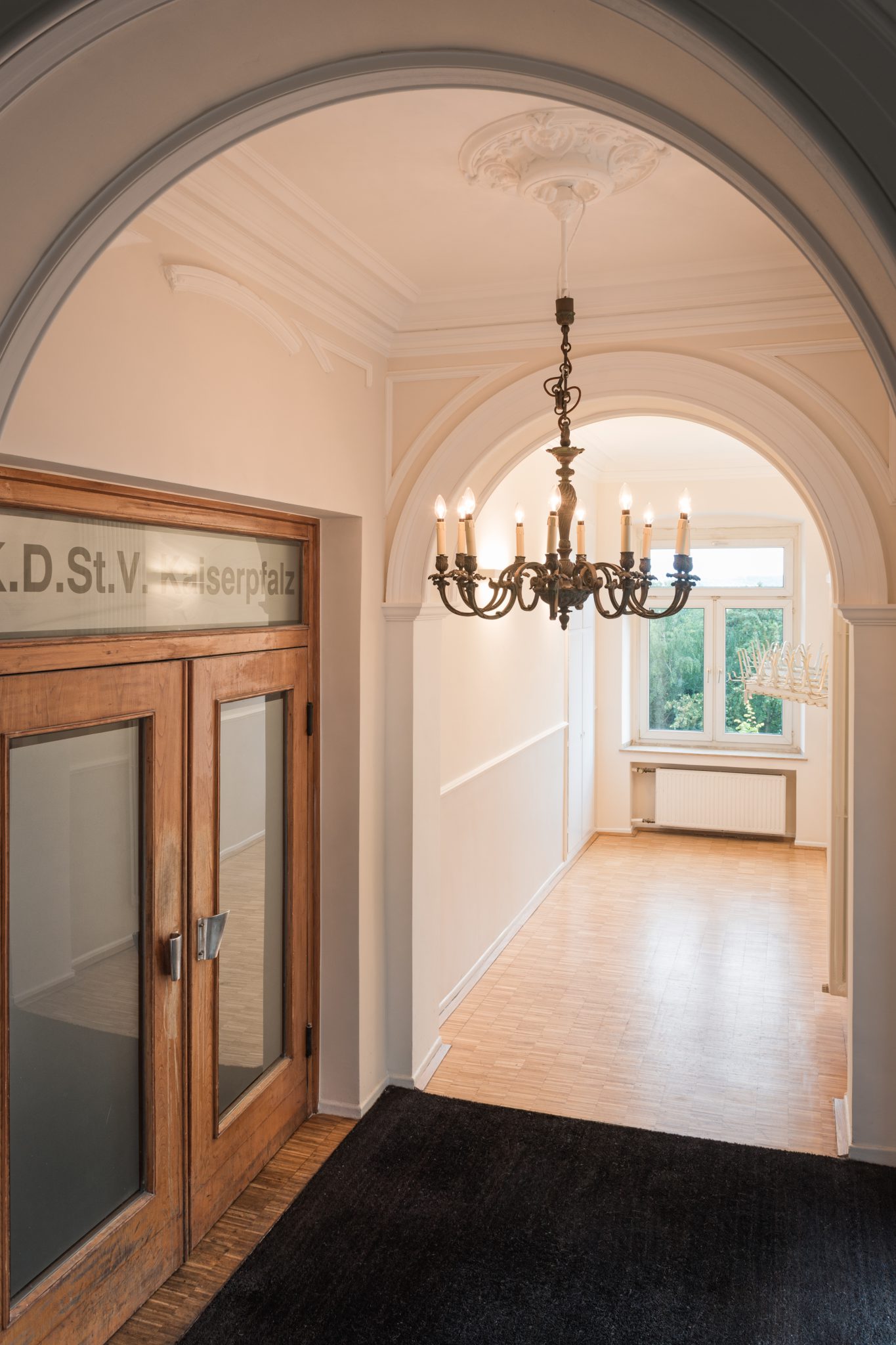 Sanierung einer Gründerzeitvilla. Die historischen Elemente, die bei einer Sanierung in den 1960 er Jahren teilweise entfernt und beschädigt wurden sind wieder freigelegt und fachmännisch instandgesetzt worden.