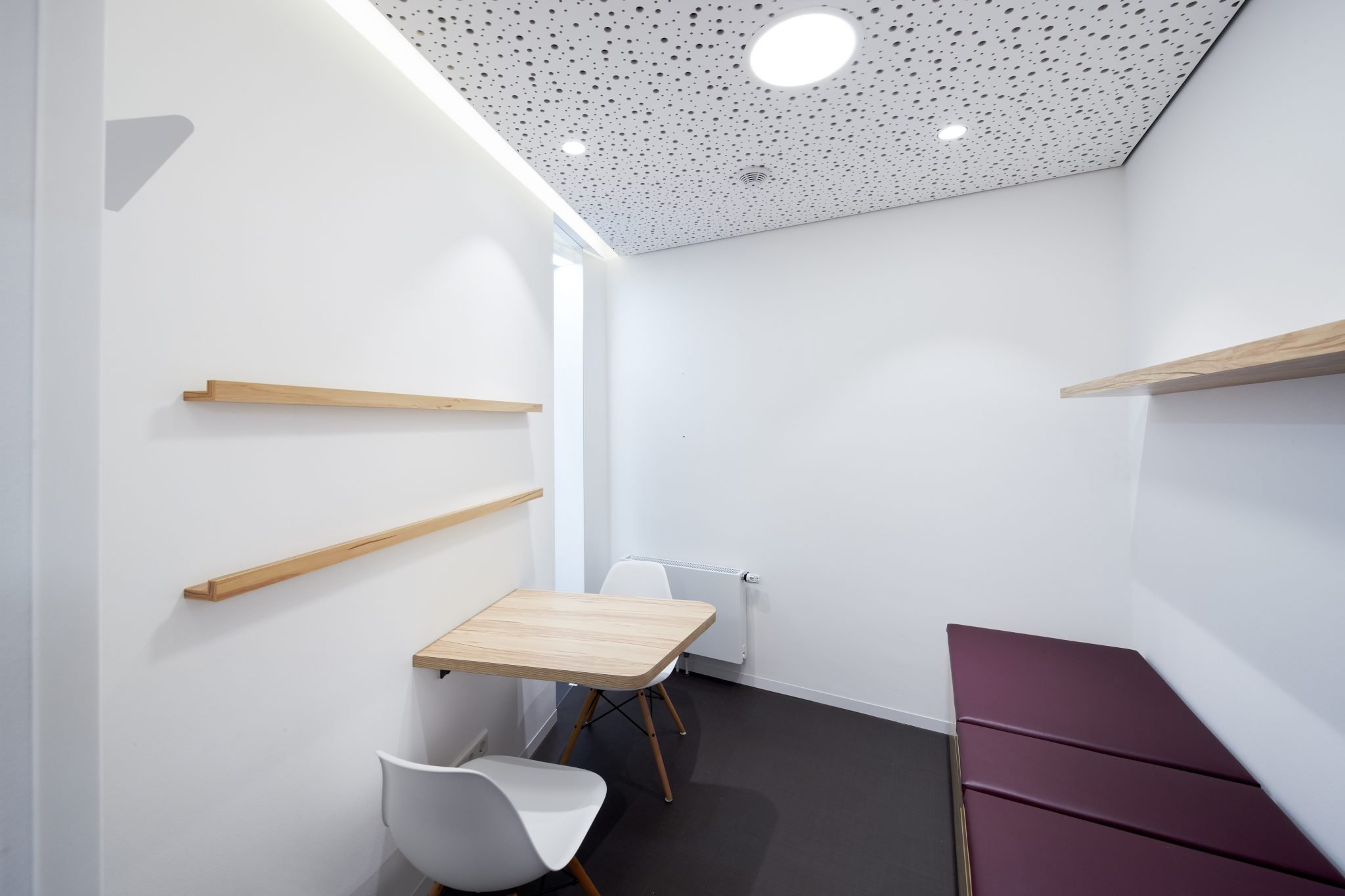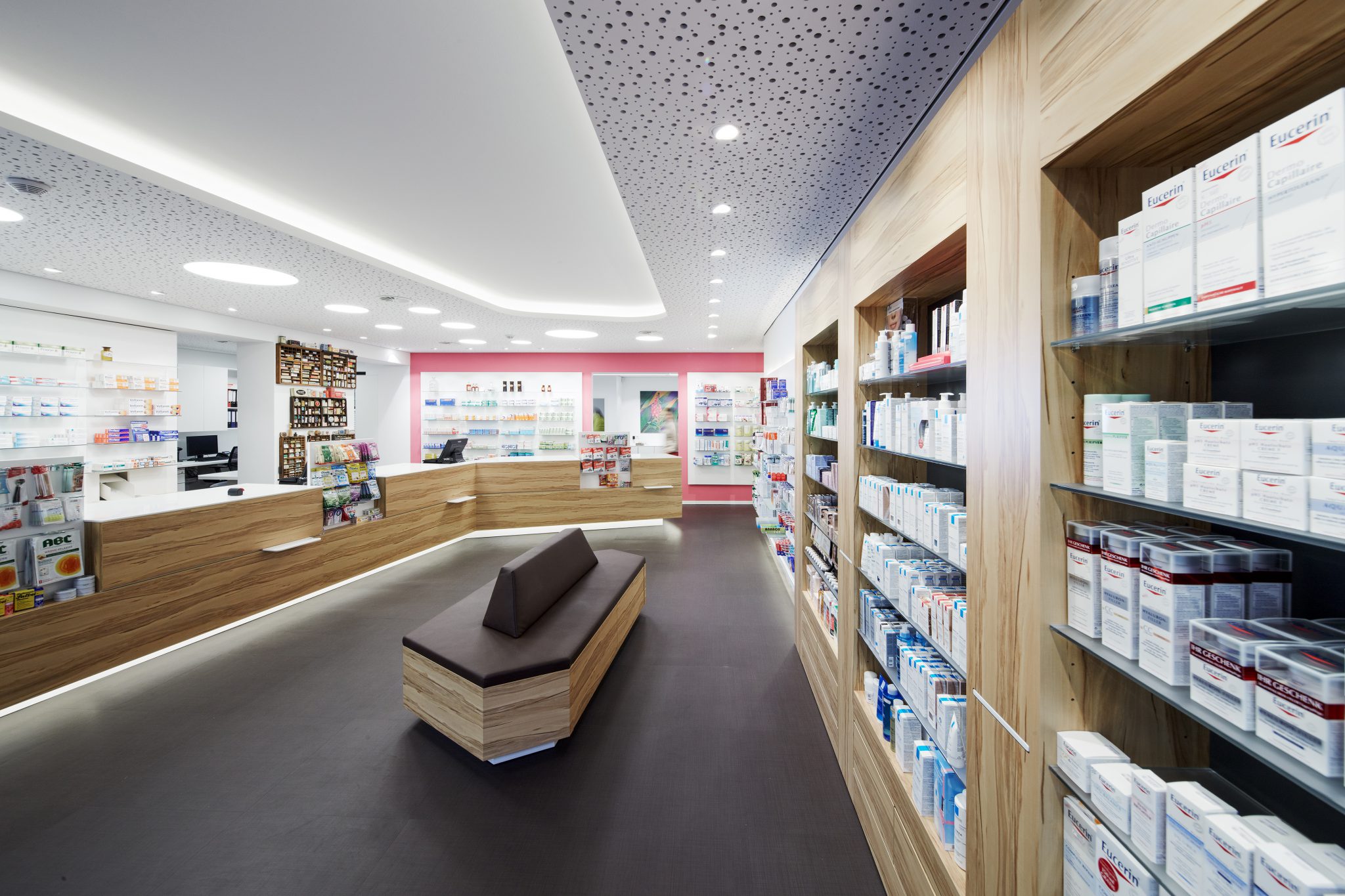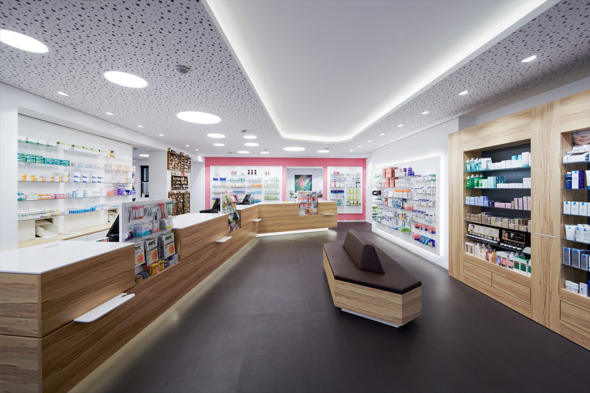 Die neue Grundrissgestaltung vergrößert die Offizin unter Einbindung eines neu geschaffenen abgeschlossenen Beratungsbereichs.