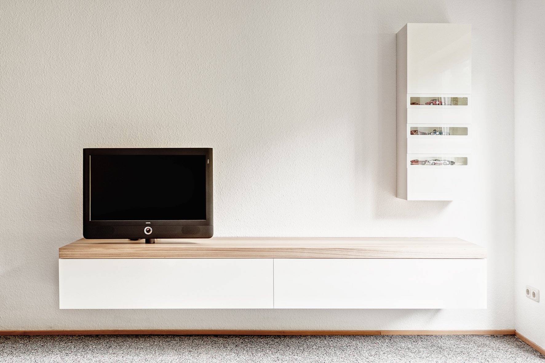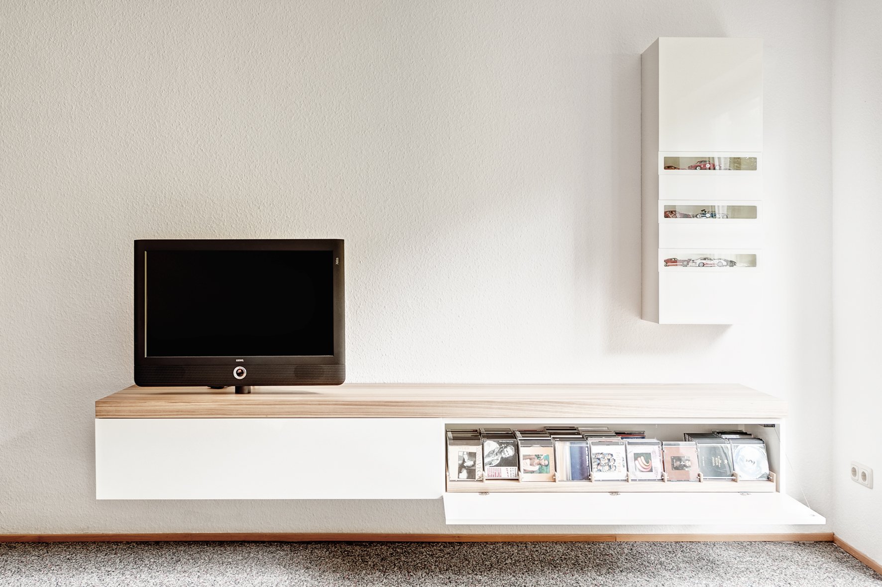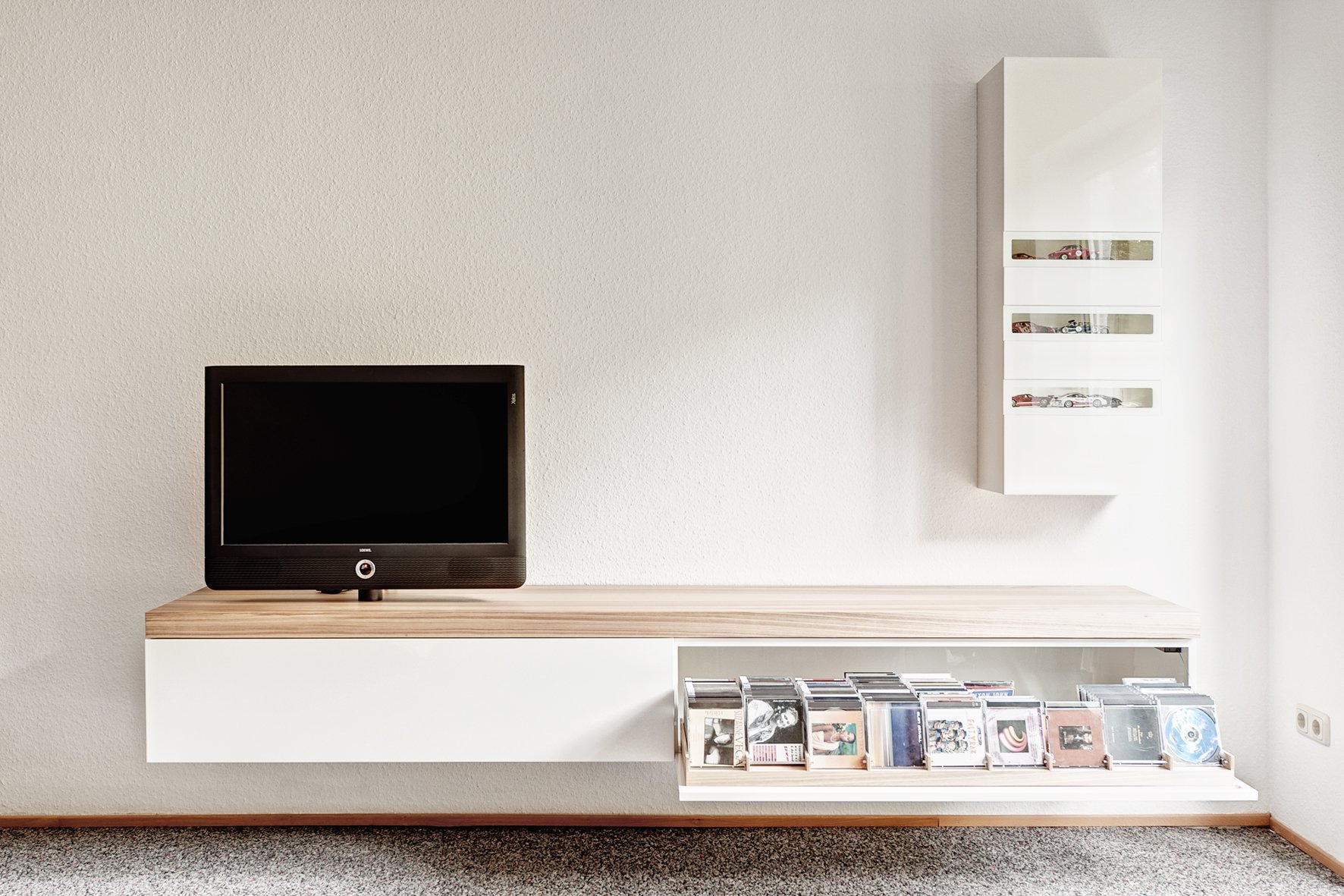 Fernsehmöbel zur Integration der multimedialen Technik und der CD-Sammlung.